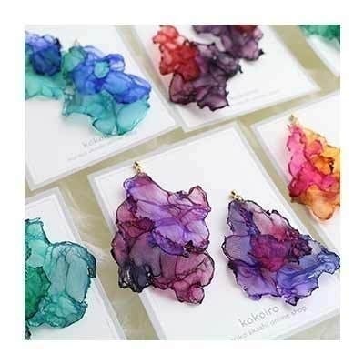 kokoiroでは、オーガンジー生地を色鮮やかに染色・加工した一点物のアクセサリーを制作しております。
